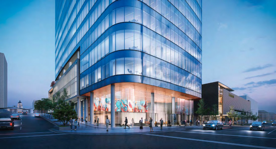 Among the other unique design elements will be a lobby entrance featuring a large video wall, along with floor-to-ceiling exterior glass, minimal columns and curved glass corners, the release states.