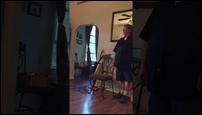 The clip is weirdly surreal. At first, it almost seems like Lucas is going to approach the camera then changes his mind at the last second.