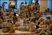 One unit, which had been resting in the Dirksen Senate Office Building, was abruptly told to vacate the facility on Thursday, according to one Guardsman. The group was forced to rest in a nearby parking garage without internet reception, with just one electrical outlet, and one bathroom with two stalls for 5,000 troops, the person said. Temperatures in Washington were in the low 40s by nightfall.