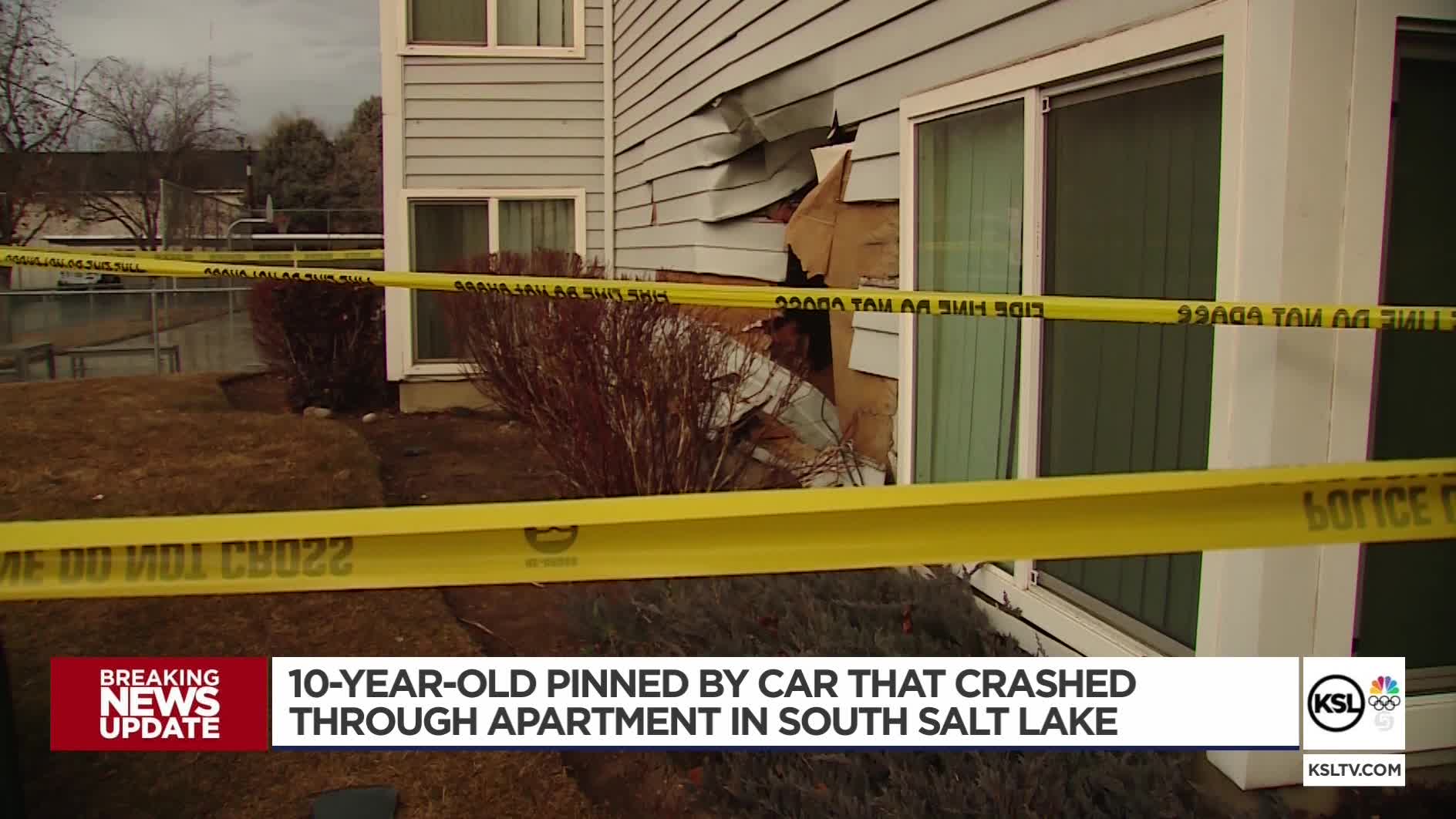 SOUTH SALT LAKE — A vehicle crashed through a South Salt Lake apartment Friday afternoon, pinning a 12-year-old girl between the car and the debris of what was once a living room.