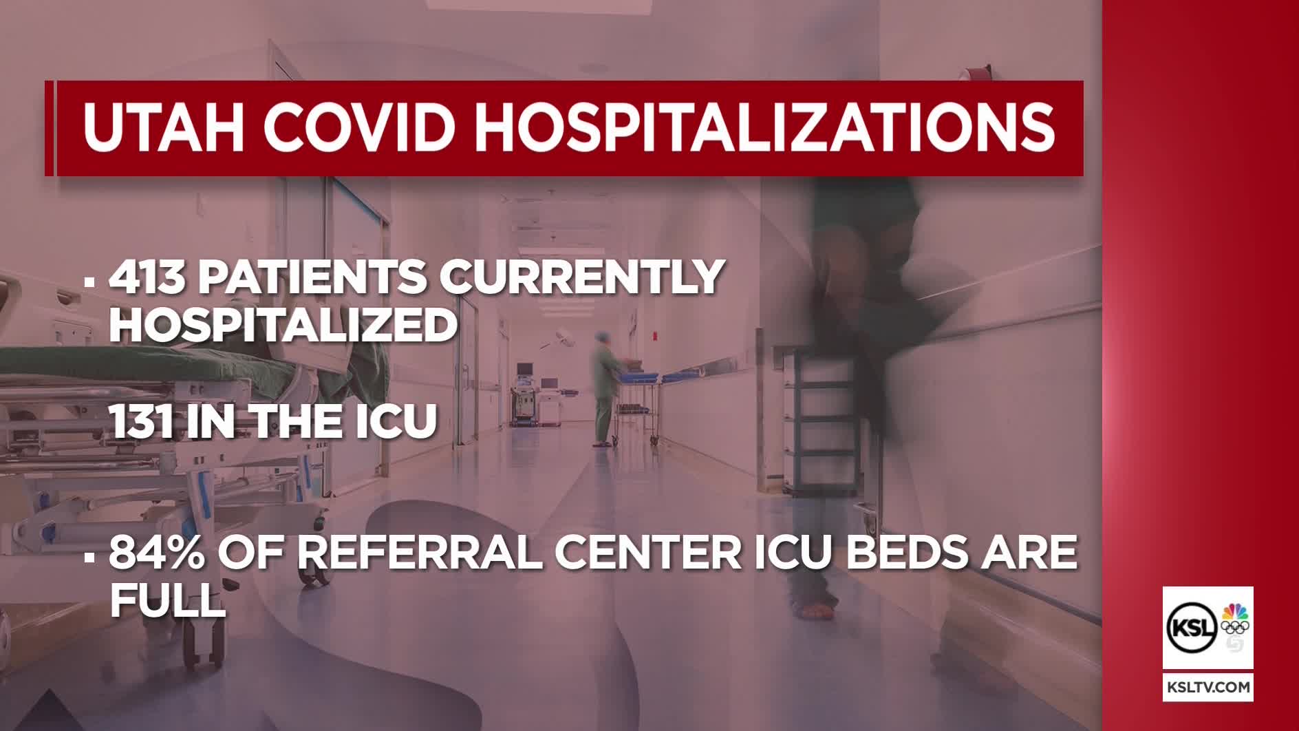 Currently, 413 Utahns are hospitalized because of the coronavirus, including 131 in intensive care. That's dipped statewide ICU capacity back just below the 85% mark, the point at which hospitals consider ICUs to be "functionally full."