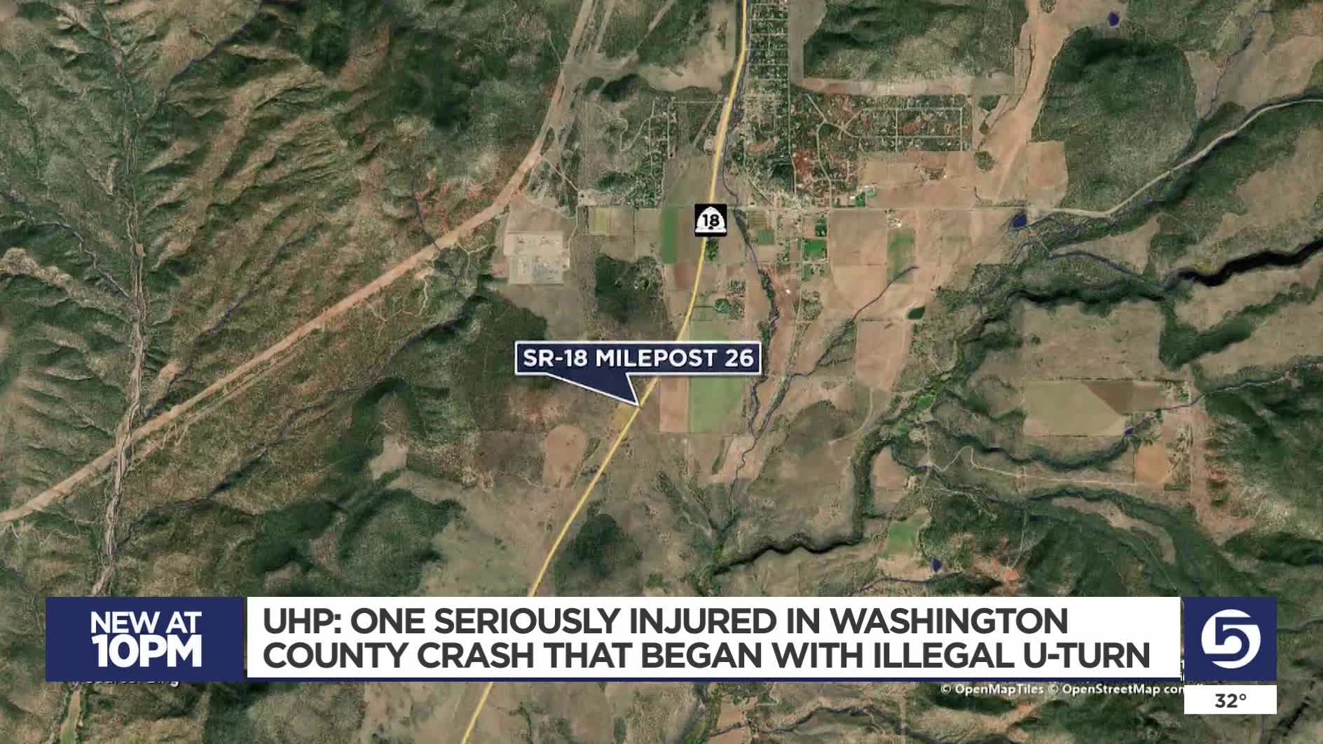 A 19-year-old man was driving a passenger vehicle along state Route 18 just a mile west of Brookside at 12:30 p.m. Sunday. He made an illegal U-turn and turned into a Ford F-150, according to Utah Highway Patrol Cpl. Tara Wahlberg.