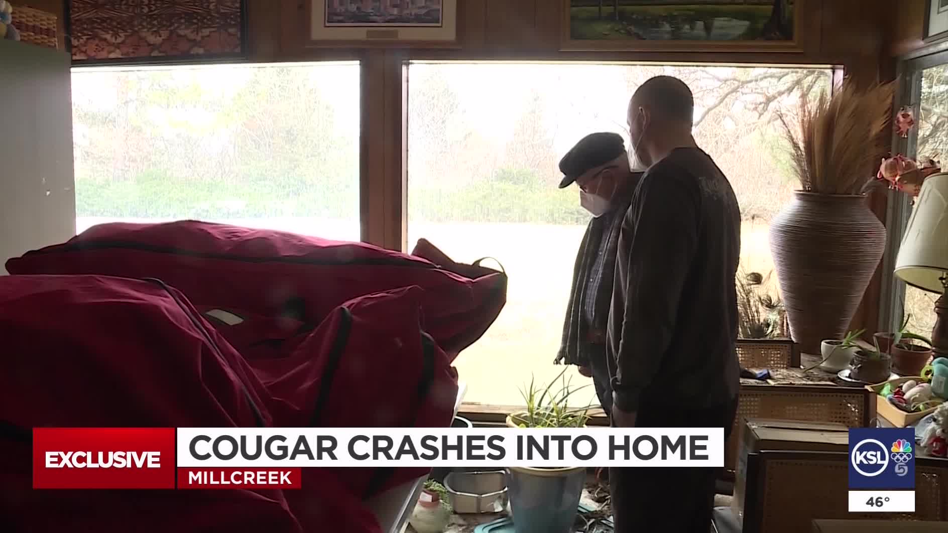 MILLCREEK — A mountain lion broke into a home through a sliding glass door in the foothills of Millcreek Canyon on Saturday. The man who discovered the animal walked away uninjured.