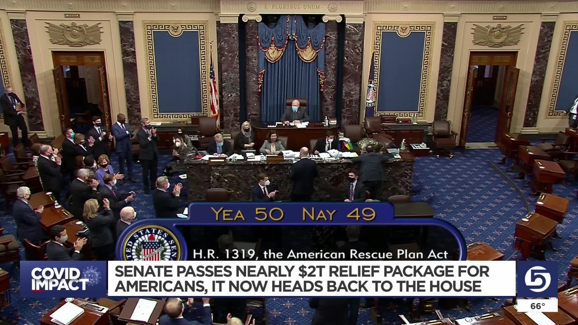 The plan passed in a 50-49 vote with the support of every Democrat but no Republicans. It is one of the largest stimulus bills in U.S. history and gives Biden his first major legislative victory since taking office in January.