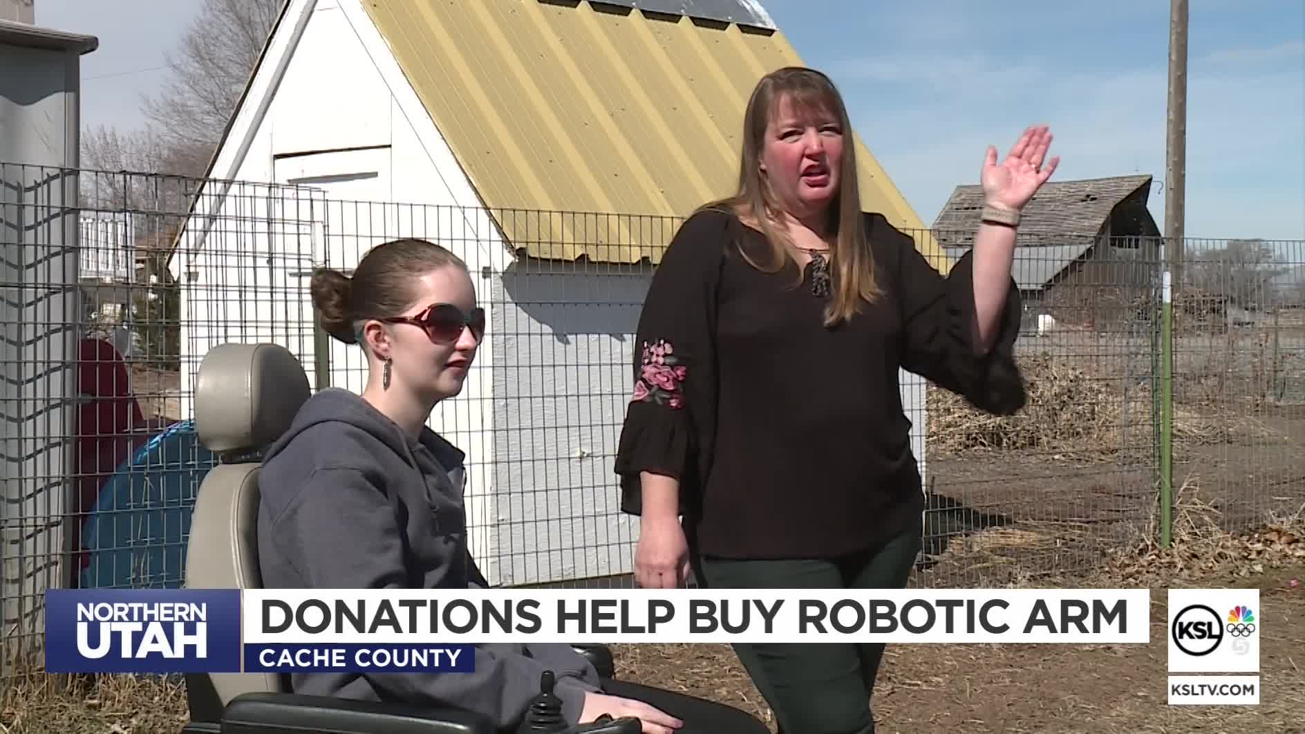 AMALGA, Cache County — Deserae Turner, a Cache Valley teenager who survived a bullet wound to the head several years ago, is now getting used to a robotic arm to help her recovery.