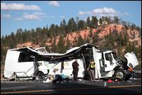 Soon after, the driver lost control of the bus and veered off the road when he tried to correct course on Sept. 20, 2019 near Bryce Canyon National Park. The bus rolled, hitting a guard rail, crushing the roof and throwing people from the vehicle.