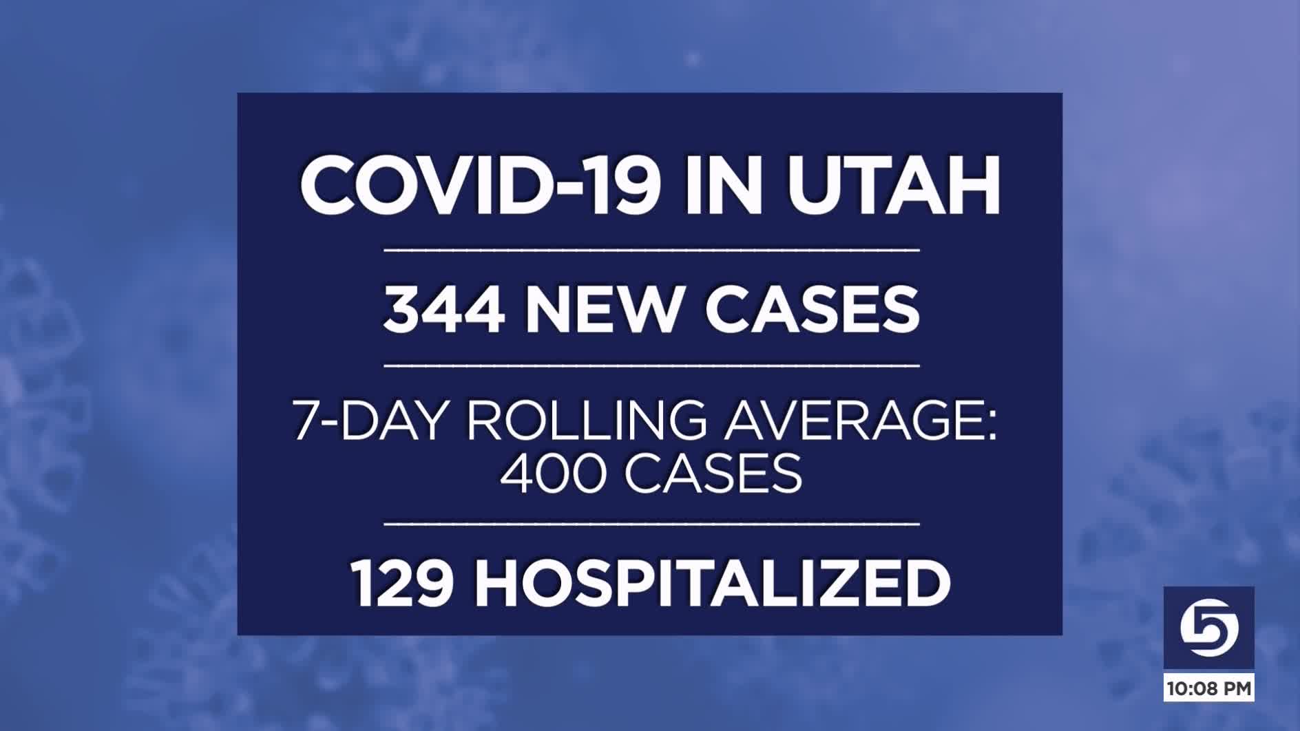 SALT LAKE CITY — There were 344 new COVID-19 cases in Utah with no new deaths, according to an update provided by the Utah Department of Health Sunday.