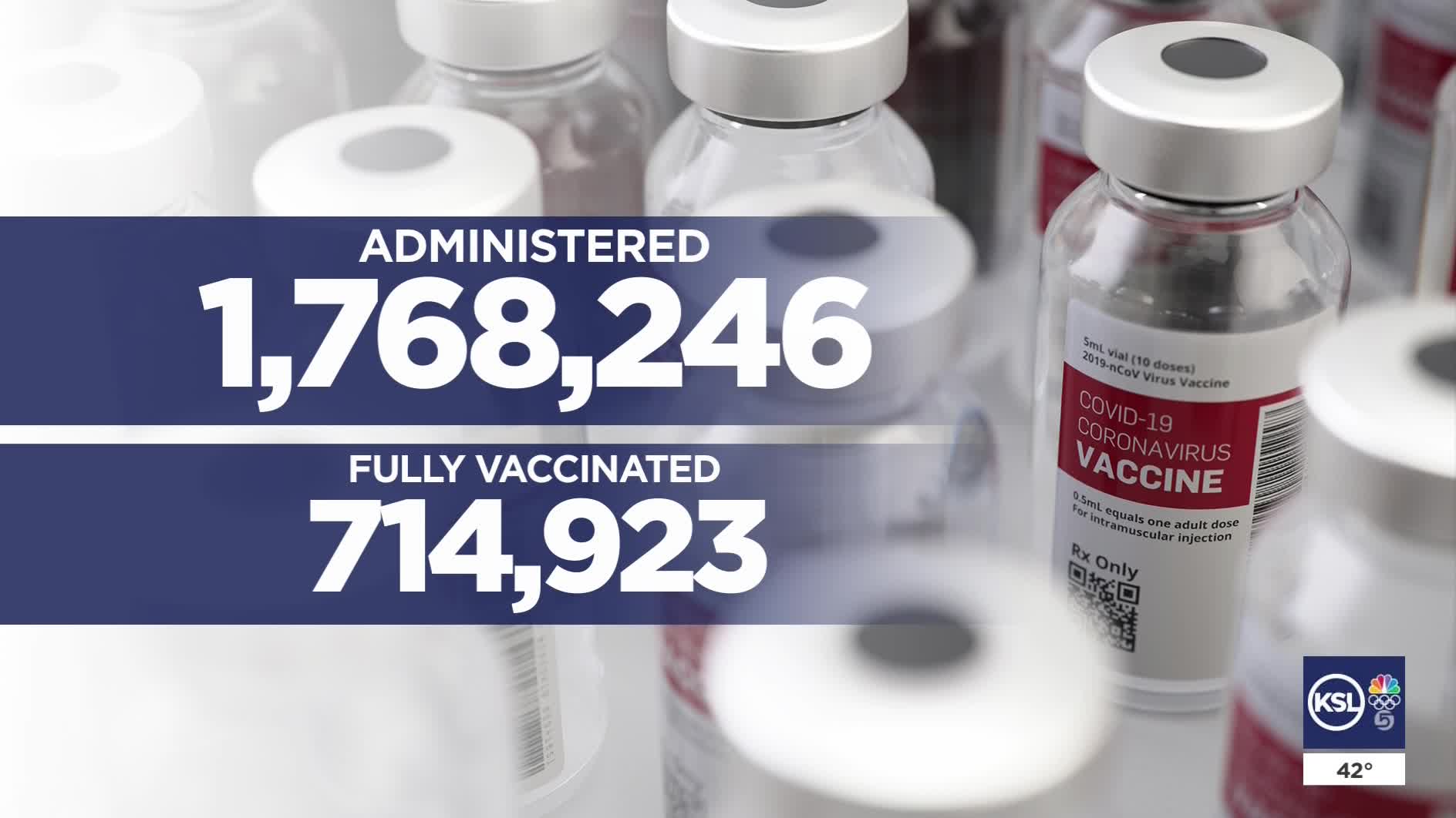 A total of 1,768,246 vaccine doses have been administered in the state, up from 1,738,003 Tuesday. A total of 1,136,477 Utahns have now received at least one dose of the vaccine, while 714,923 are now fully vaccinated, state data shows.