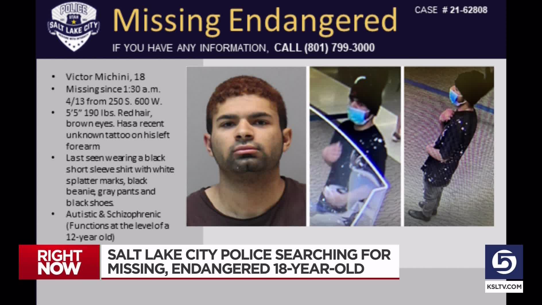 Police previously said Michini has autism and schizophrenia. He functions at the level of a 12-year-old and is considered endangered by police. He had last been seen at 250 S. 600 West.