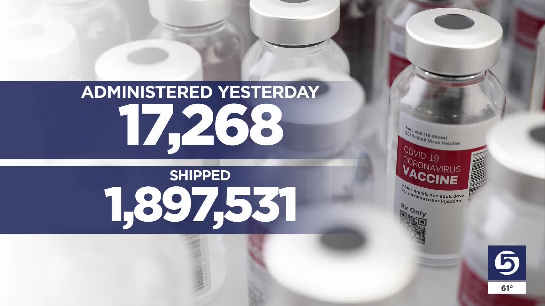 A total of 1,897,531 vaccine doses have been administered in the state, up from a total of 1,880,269 the day before.