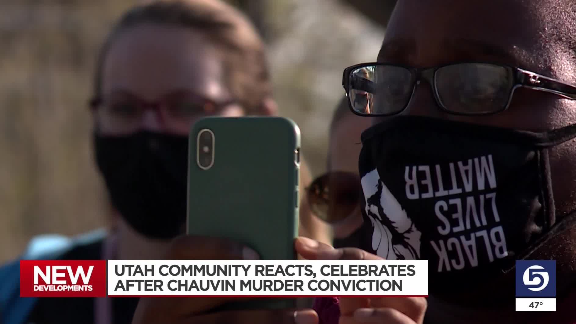 Salt Lake City leaders and members of the city's citizen panel exploring police reforms gathered at the International Peace Gardens on the city's west side Tuesday afternoon to express support for the guilty verdicts and honor Floyd's memory.