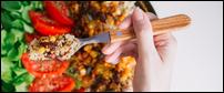 Start planning your meals by choosing what vegetables, fruits and/or whole grains to eat first, then add in a complementary protein to go with. Examples could be salad as an entree, a grain power bowl, hearty vegetable soup, roasted vegetables with chicken or tofu.