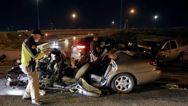 In addition to hitting Doner's vehicle head-on, police say a second car — a Jeep Cherokee that was behind the Taurus — also struck Robertson's car head-on. After that collision, Robertson got out of his car and ran, but only made it about 100 yards before being captured, the Utah Highway Patrol said.