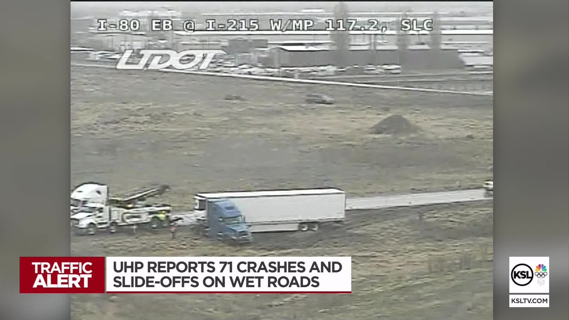The National Weather Service in Salt Lake City warned drivers to be aware of slick conditions and water pooling on the road as the rain continued to fall in Salt Lake City and throughout southwest Utah.