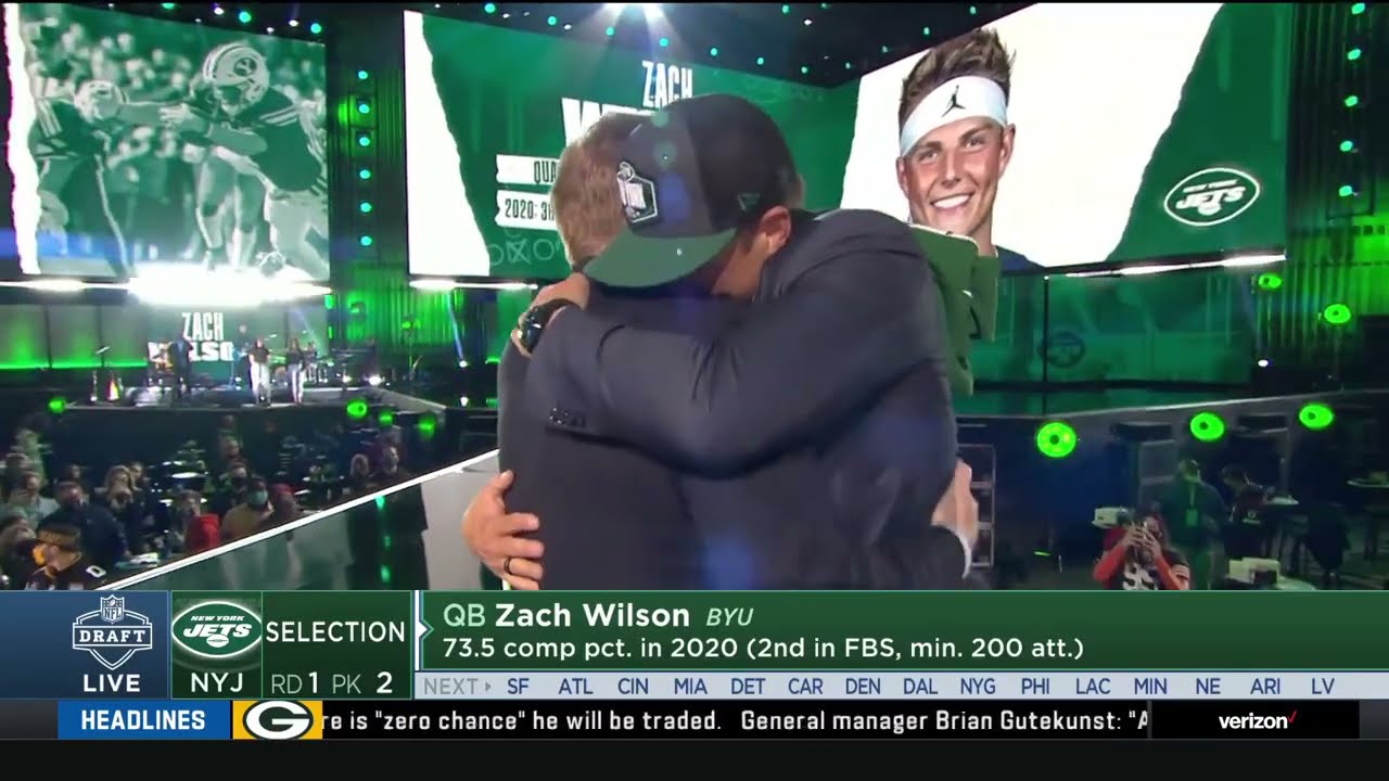 The Jets are happy to have him — even if there wasn't much suspense in making the pick. New York general manager Joe Douglas admitted after the draft that the organization has planned on selecting Wilson with the No. 2 pick since he watched the former BYU starter's pro day in March. Prior to that, the Jets held several rounds of Zoom interviews with Wilson and other prospects — but even then, there was something different about the football-obsessed film junkie from Draper.