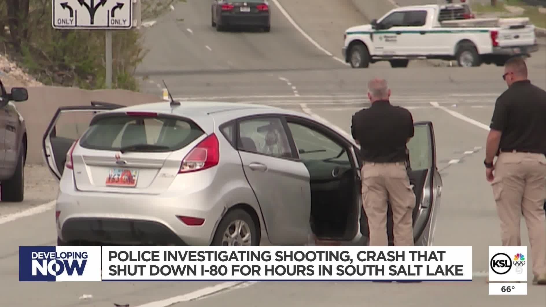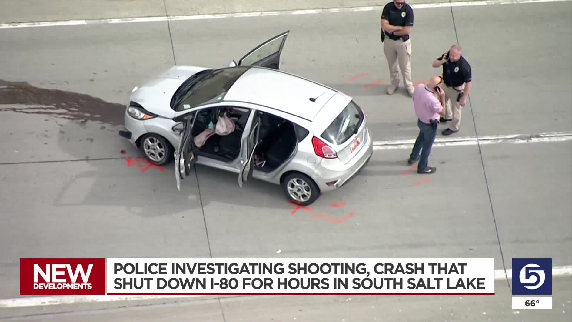 Sometime after that on Saturday, a single-car crash was reported on I-80 near State Street. Utah Highway Patrol responded and found 32-year-old Shandon Nicole Scott, of Salt Lake City, dead, with what appeared to be a gunshot wound, officials said.