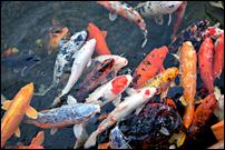 Koi is a type of carp that has become more of an ornamental fish, used as decoration because of their colors in private ponds and pools.