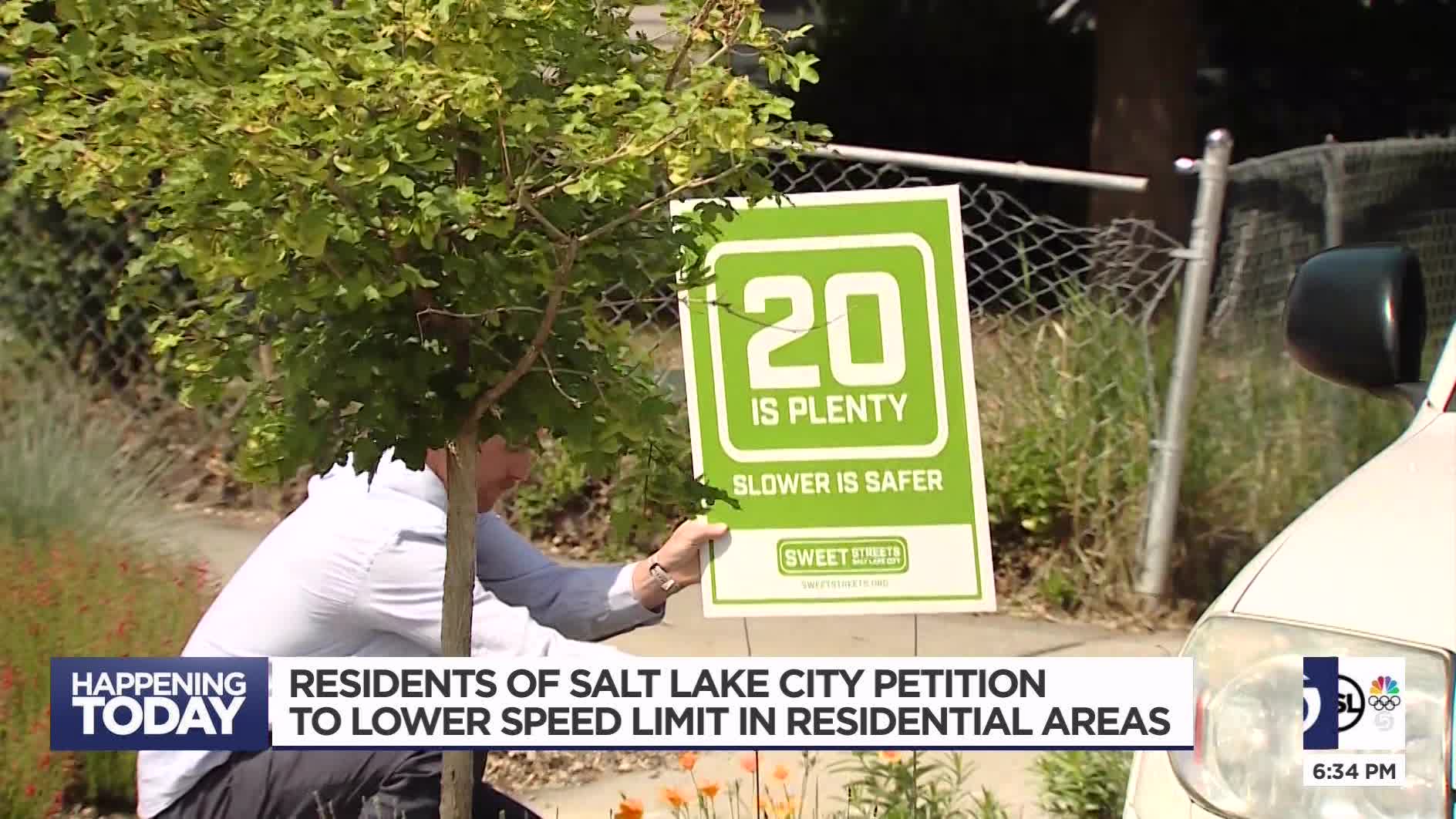 The volunteer organization Sweet Streets Salt Lake City began a campaign this week seeking to enact a 20 mph speed limit on roads where people live, work, play, shop or attend school or worship. They began handing out lawn signs reading "20 Is Plenty: Slower Is Safer" and collecting signatures for a petition Wednesday evening.