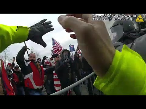 WASHINGTON (AP) — Videos released under court order provide a chilling new look at the chaos at the U.S. Capitol on Jan. 6, including body camera footage that shows a man charging at a police officer with a flagpole and tackling him to the ground.
