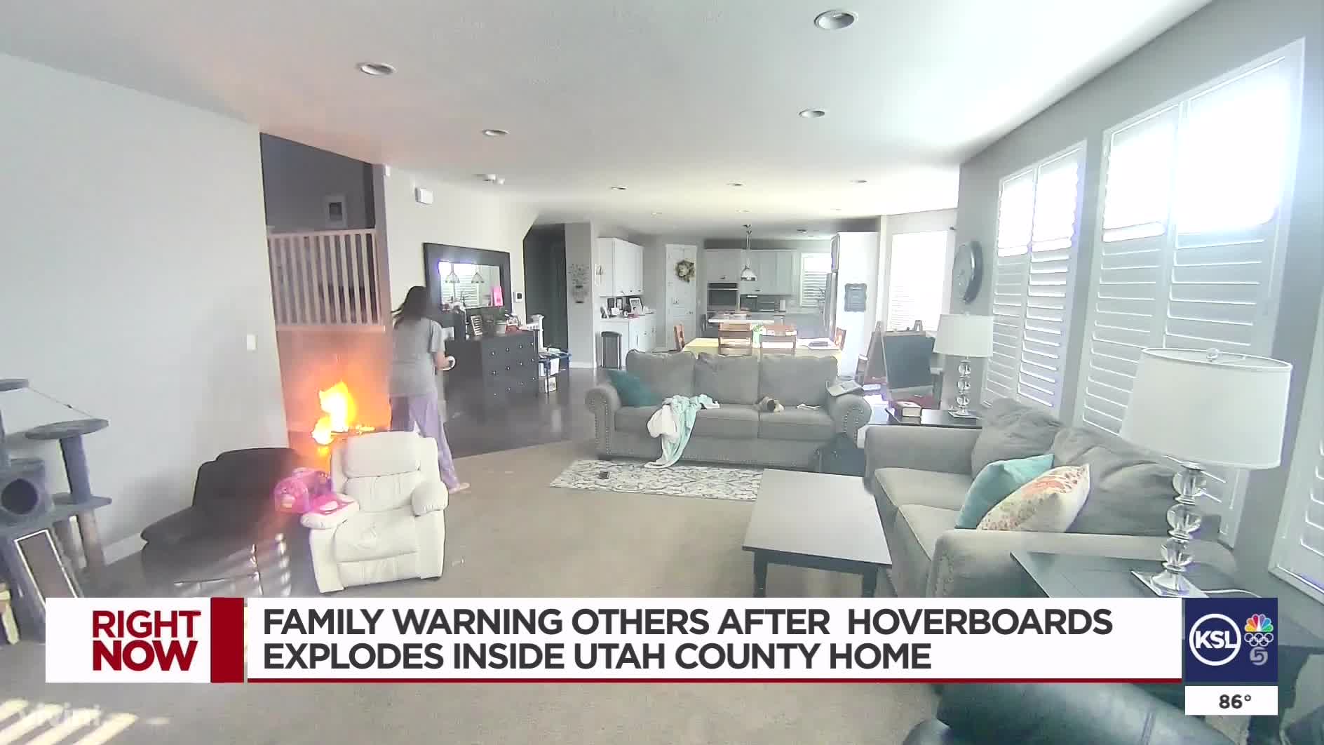 LEHI — Armed with only an oven mitt, a Utah mom raced around her family room and kitchen, trying to smother several fires caused by an exploding hoverboard ride-on toy.