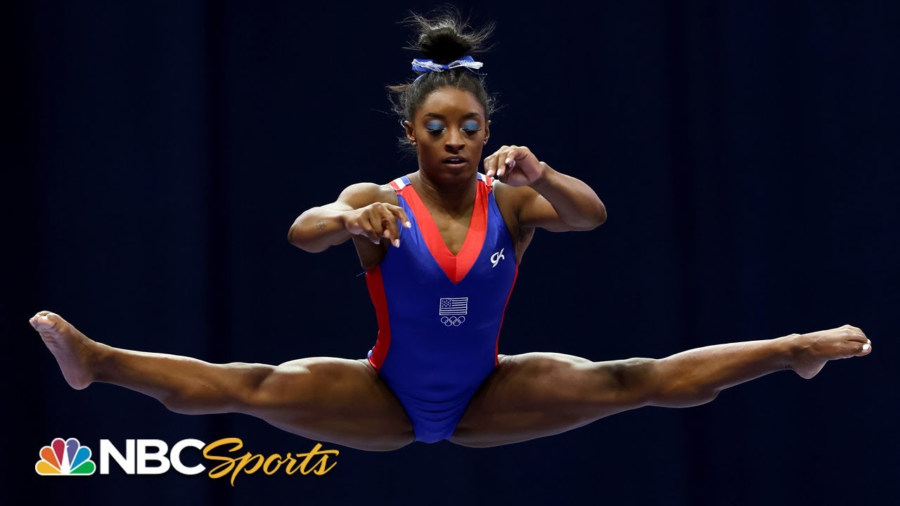 Her floor exercise — the one that includes not one but two eponymous elements in the sport's Code of Points — was both spectacular and spectacularly controlled. Clearly frustrated after stepping out of bounds several times while winning her seventh national title earlier this month, Biles kept her toes well inside the white lines during her law-of-physics pushing tumbling passes.