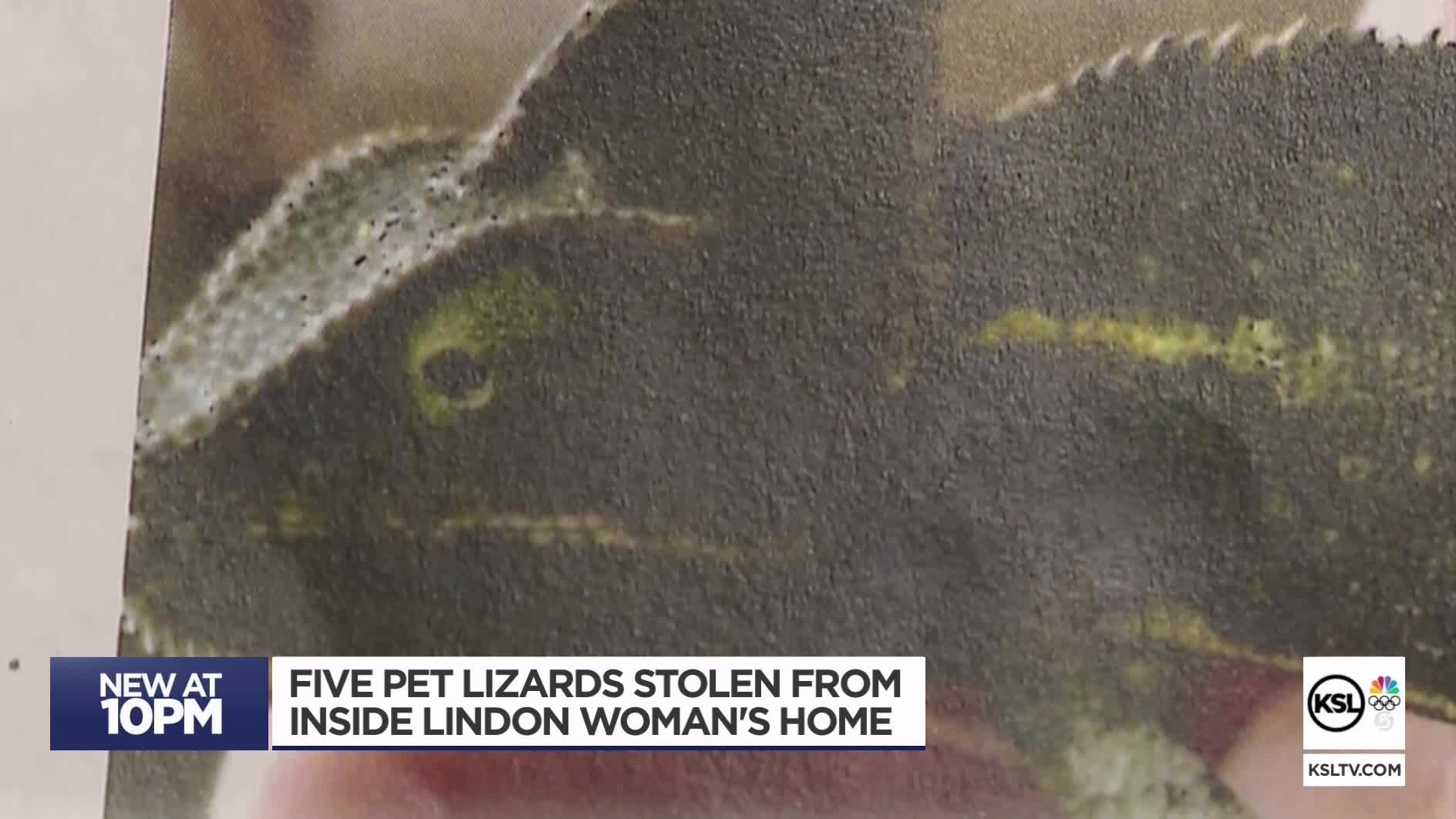 LINDON — A Lindon woman said she was looking for help from the public after five lizards were stolen from her home during a burglary, apparently perpetrated by some unusual suspects.