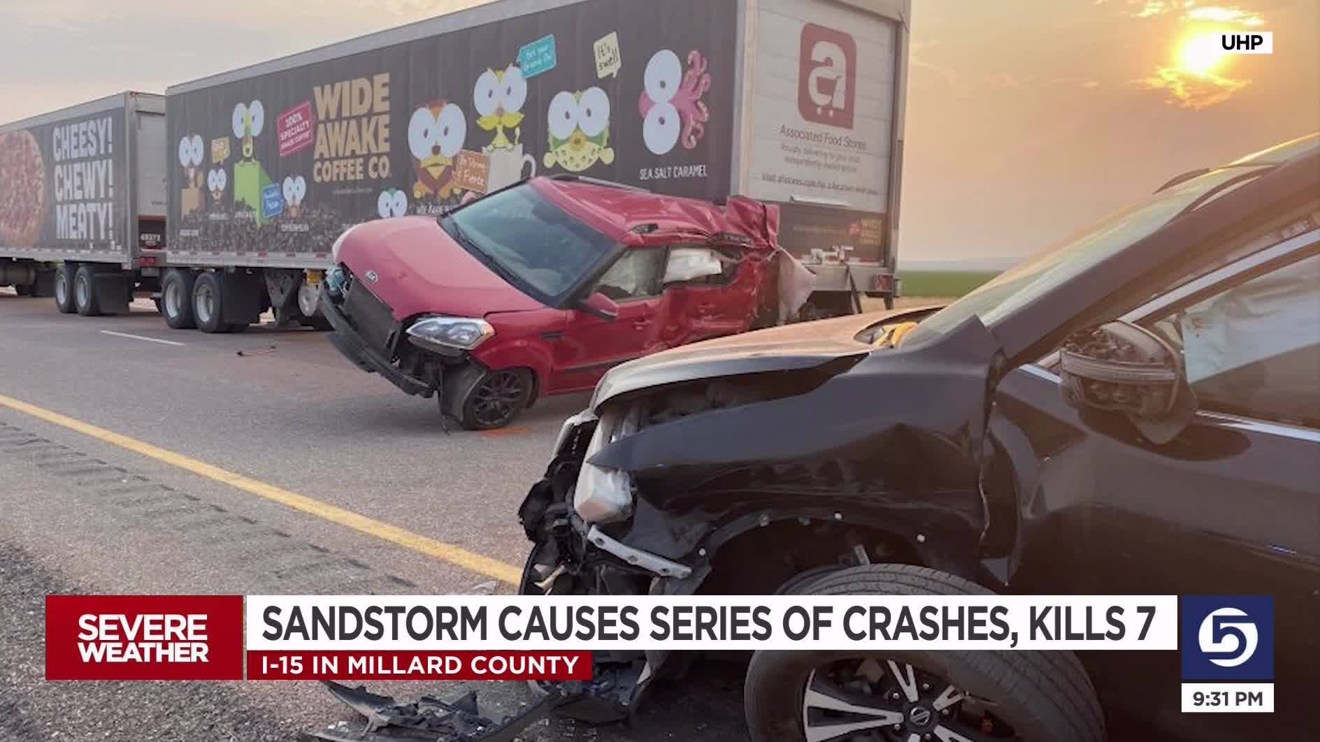 KANOSH, Millard County — A sandstorm in Millard County caused a crash on I-15 Sunday that left at least seven people dead and multiple others injured, the Utah Highway Patrol said.