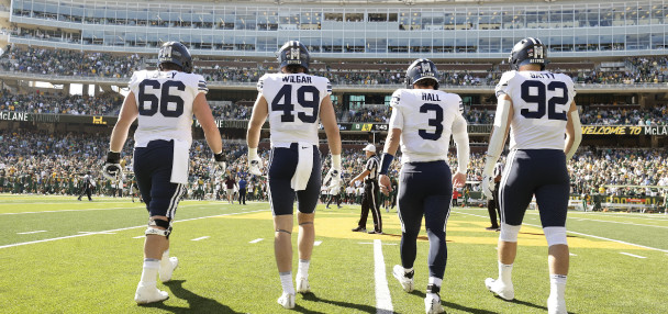 To satisfy their contracts with Built, BYU football players must wear a decal with the company's logo on their practice helmets and make at least one appearance at a company event.