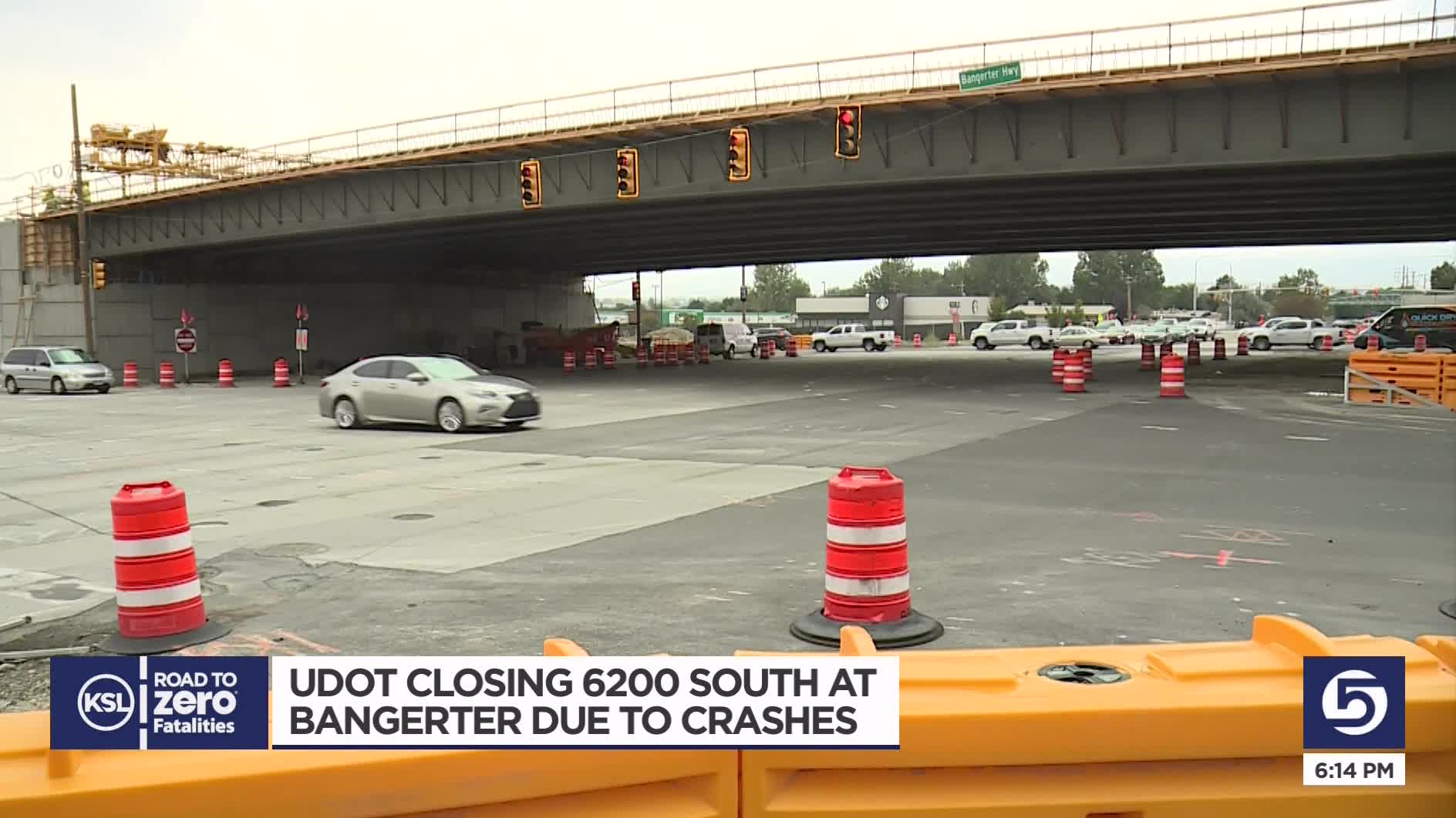 TAYLORSVILLE — The Utah Department of Transportation said it will shut down east-west traffic on 6200 South at Bangerter Highway due to a rise in crashes caused by drivers speeding and running red lights.