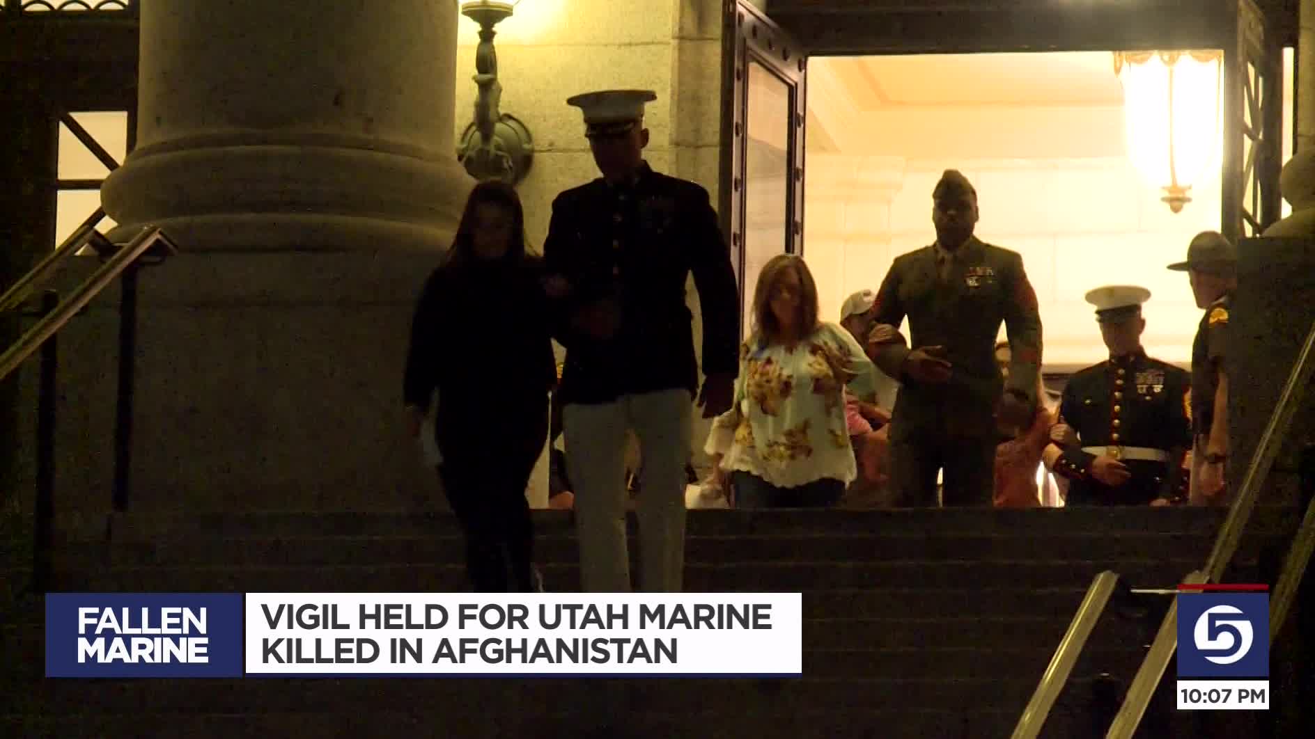 These are the steps of the @UTStateCapitol tonight. 100s gathered to honor the life of @USMC Staff Sgt. Taylor Hoover, one of the 13 service members killed in #Afghanistan. His family has just landed from Dover AFB & will attend tonight's memorial. Watch live on @KSL5TV KSL5TV pic.twitter.com/DsNZhXuuP1