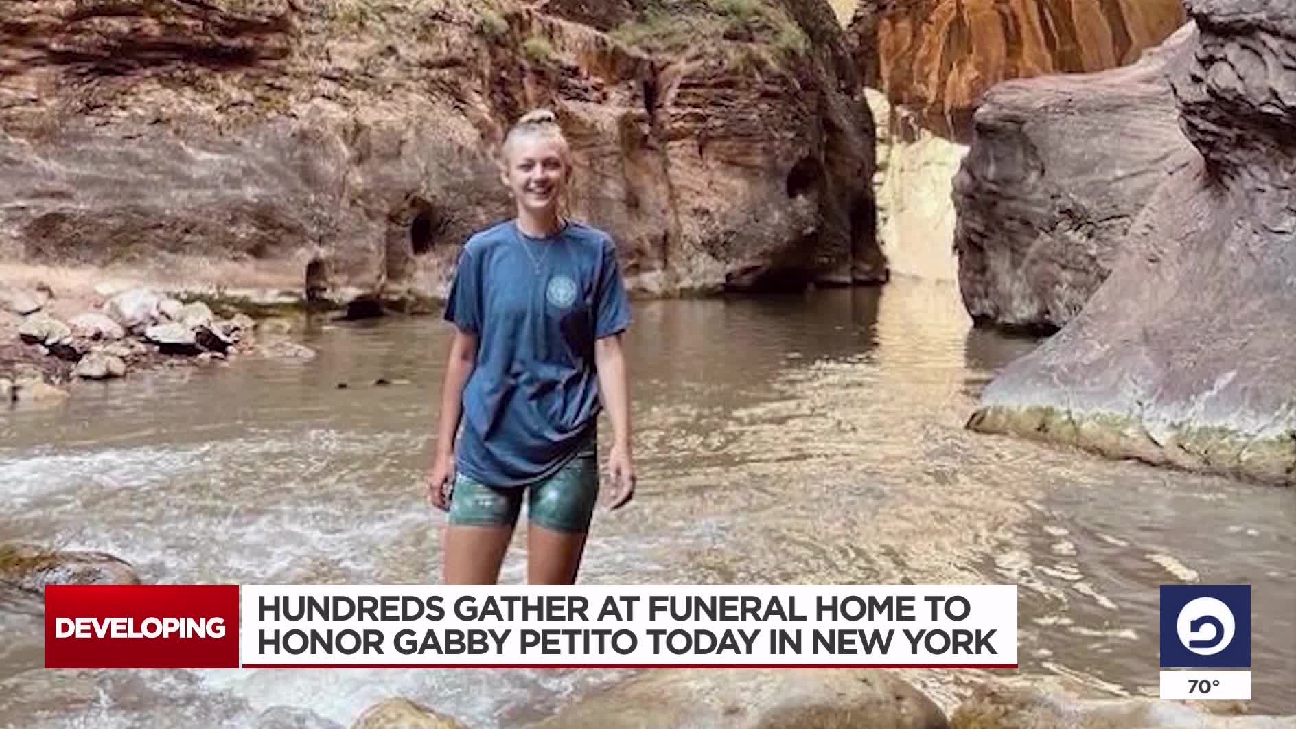 HOLBROOK, N.Y. (AP) — Lines of mourners paid their respects Sunday for Gabby Petito, the 22-year-old whose death on a cross-country trip has sparked a manhunt for her boyfriend.