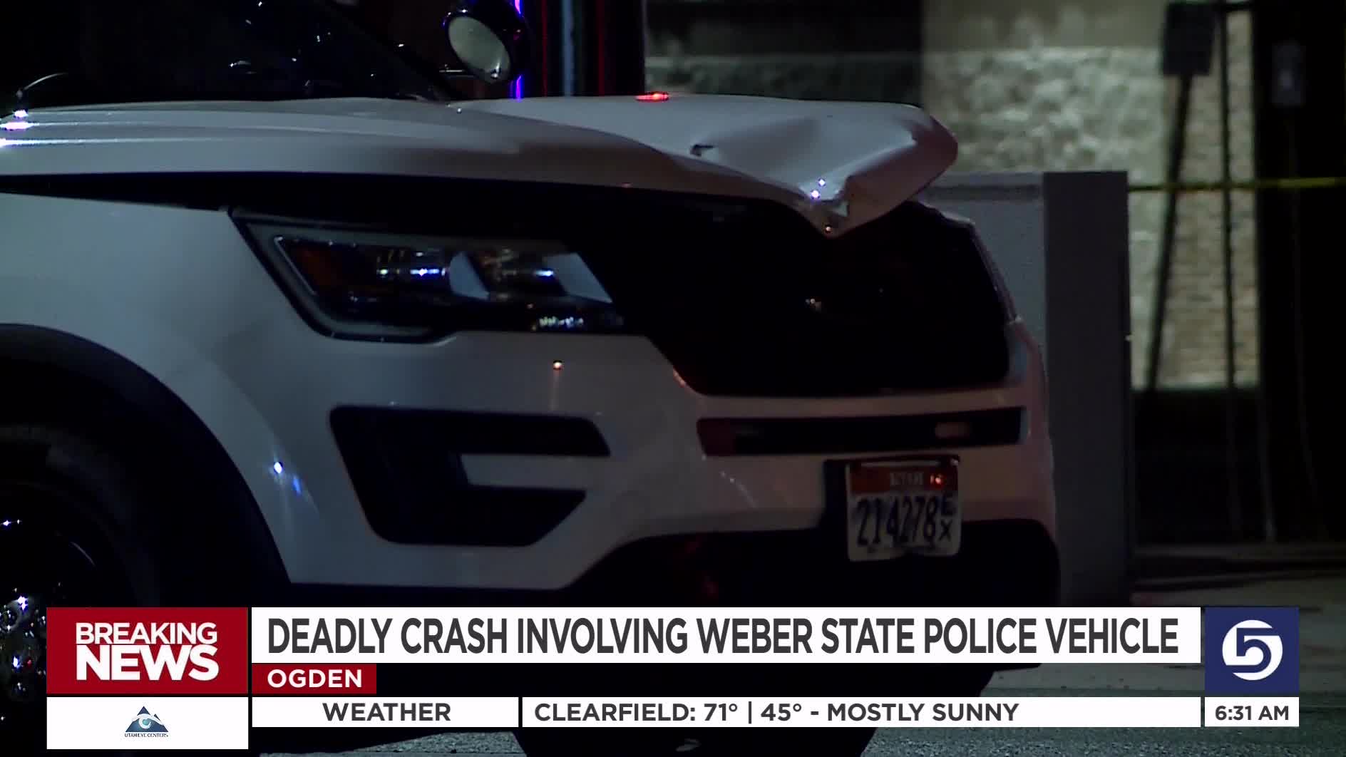 The officer involved in the crash was not injured, Weber State police said. That officer has been placed on paid administrative leave while the investigation continues.