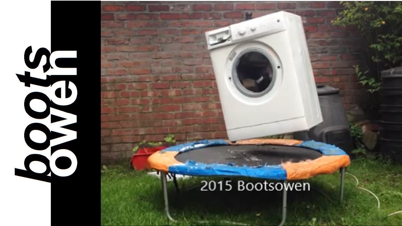In the video, Bootsowen takes a washing machine with bricks inside and places said machine on a trampoline. Then he turns it on. The results go as expected, but they are still surprising.