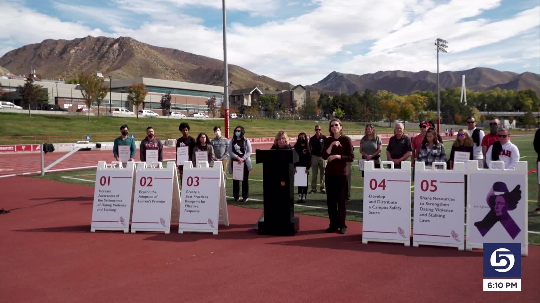 SALT LAKE CITY — On the third anniversary of University of Utah student-athlete Lauren McCluskey's murder, her parents announced a new plan from the McCluskey Foundation to change the culture surrounding dating violence stalking on college campuses.