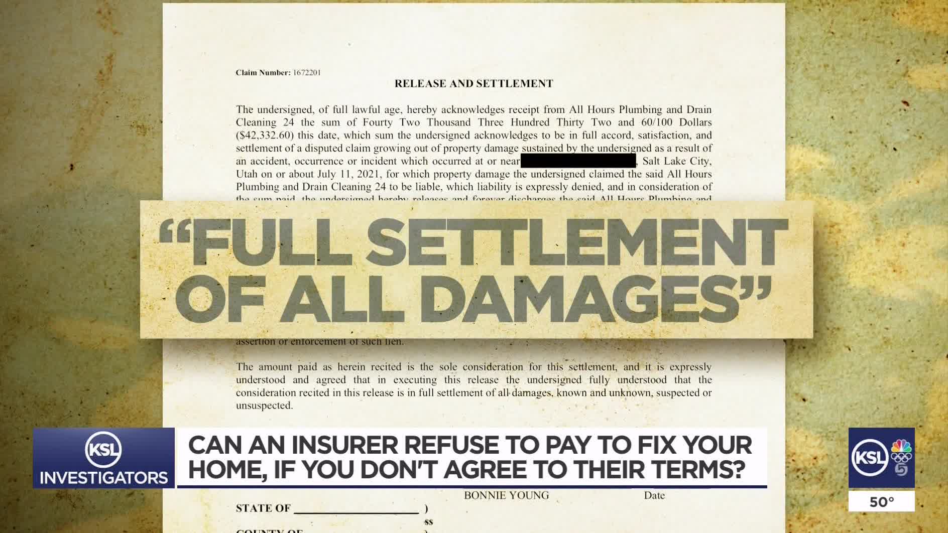 In an email to KSL, the company's executive director wrote, "A payment for the undisputed damage amount has been issued to Ms. Young and should be received in the coming days. The parties continue to work toward full resolution of the entire claim. Beyond that, we do not go into specifics of individual claims situations."
