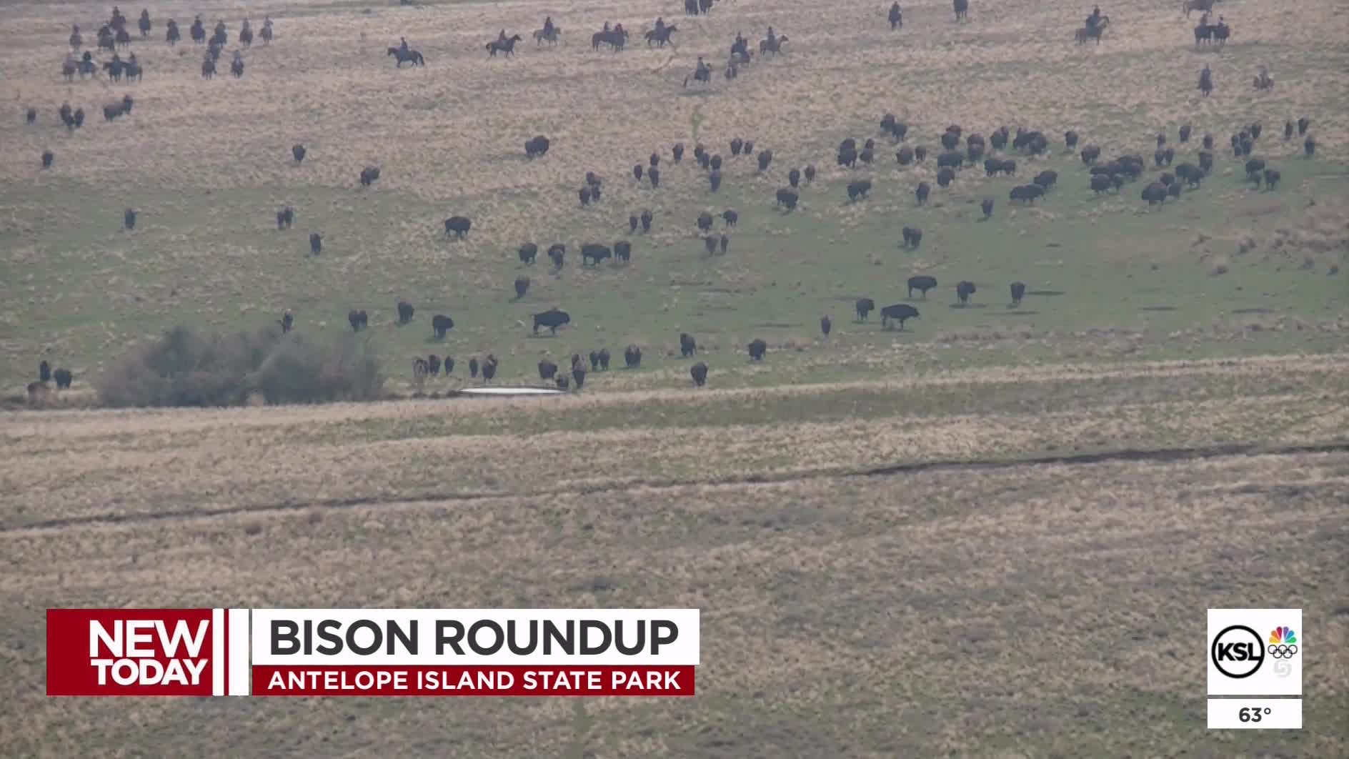 ANTELOPE ISLAND — Antelope Island State Park was a popular place to be Saturday as thousands of people showed up for the annual bison roundup.