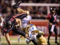 Thomas' four rushing touchdowns and the team's 290 yards rushing on the night was enough to prove that point — and that's saying nothing of a deathly pancake by lineman Sataoa Laumea on a UCLA defender and another block down field by Dalton Kincaid to allow Thomas to waltz into the end zone for one of his four touchdowns on the night.