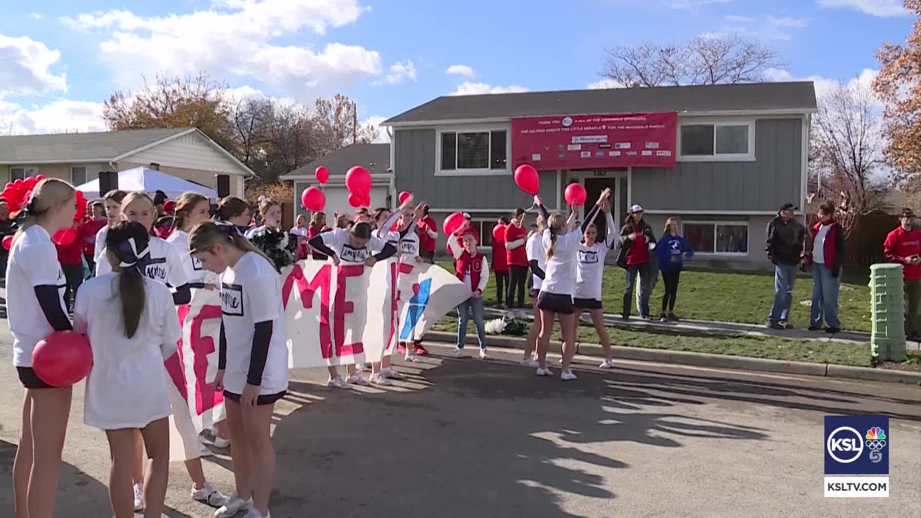 There was a big banner on the house, a DJ playing music, cheerleaders, balloons, and speeches to show the McDonalds how much they are loved.