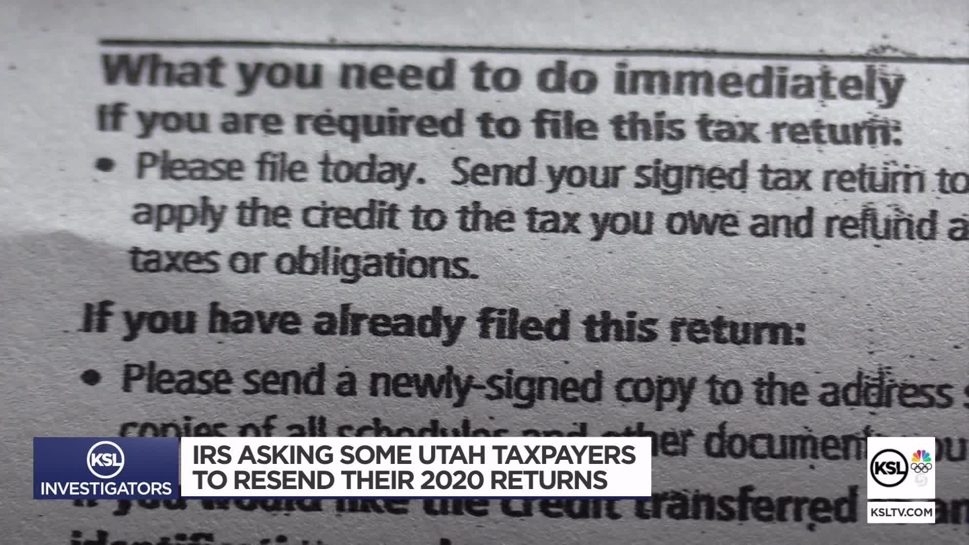 SALT LAKE CITY — Utah taxpayers who paid their taxes almost a year ago say they're now getting letters from the Internal Revenue Service asking them to file their 2020 returns immediately. When a Utah man received one of the letters out-of-the-blue, he didn't believe it was legit, so he contacted the KSL Investigators.
