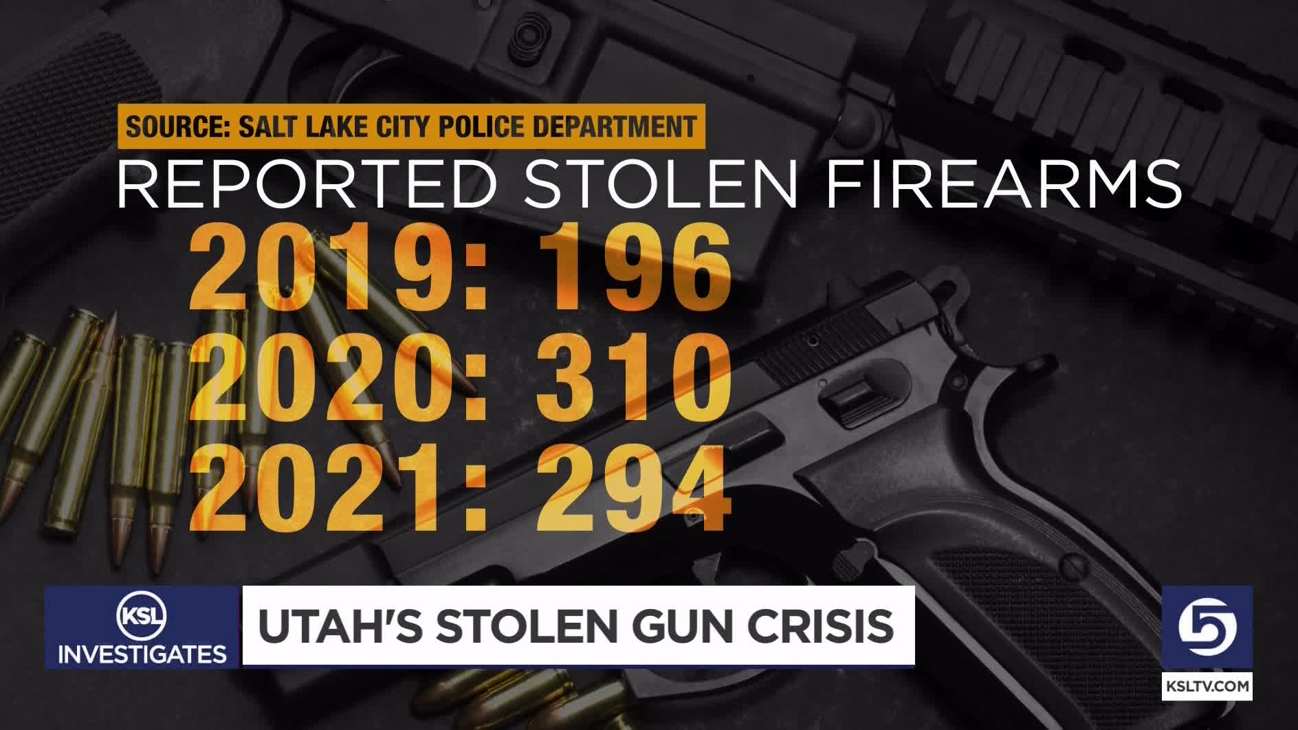 KSL investigators reviewed the department's data from the last three years and found a 58% increase in reports of stolen guns from 2019 (196) to 2020 (310), with only a slight drop in 2021.
