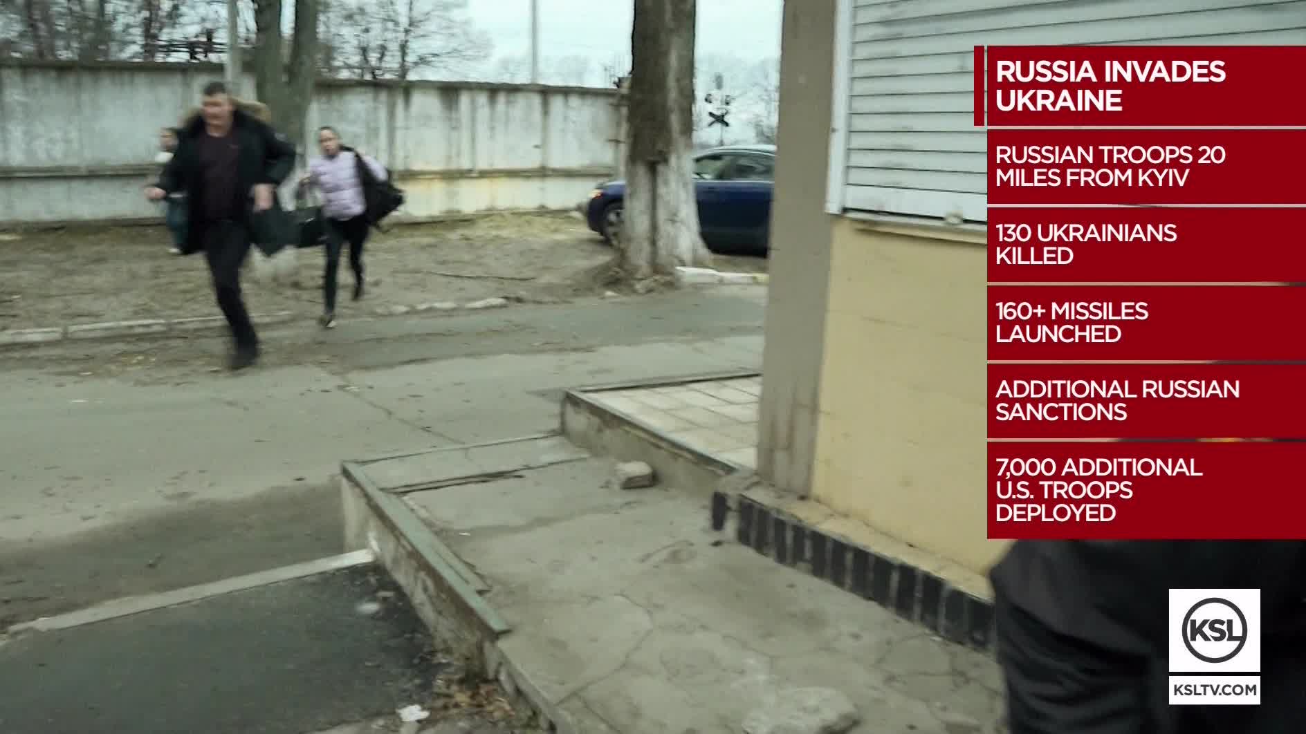 The assault, anticipated for weeks by the U.S. and Western allies and undertaken by Putin in the face of international condemnation and cascading sanctions, amounts to the largest ground war in Europe since World War II. As Russian missiles bombarded cities and military bases, government leaders pleaded for help and for powerful sanctions against Russia. Civilians piled into trains and cars to flee and patrons of a hotel were directed into a shelter as explosions sounded in Kyiv.