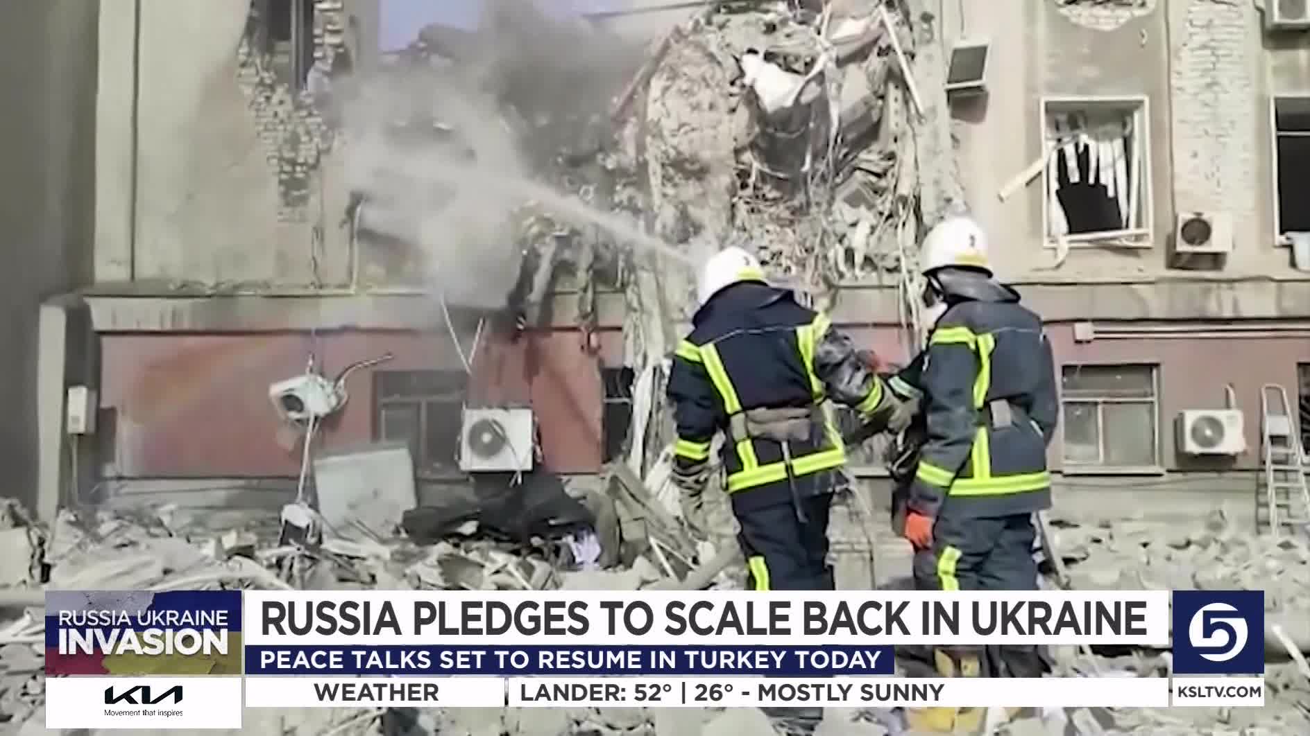 KYIV, Ukraine — Russian forces bombarded areas around Kyiv and another city just hours after pledging to scale back operations in those zones to promote trust between the two sides, Ukrainian authorities said Wednesday.