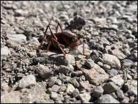 They're not hard to spot. The insects, which can grow larger than 2 inches, blot the asphalt.