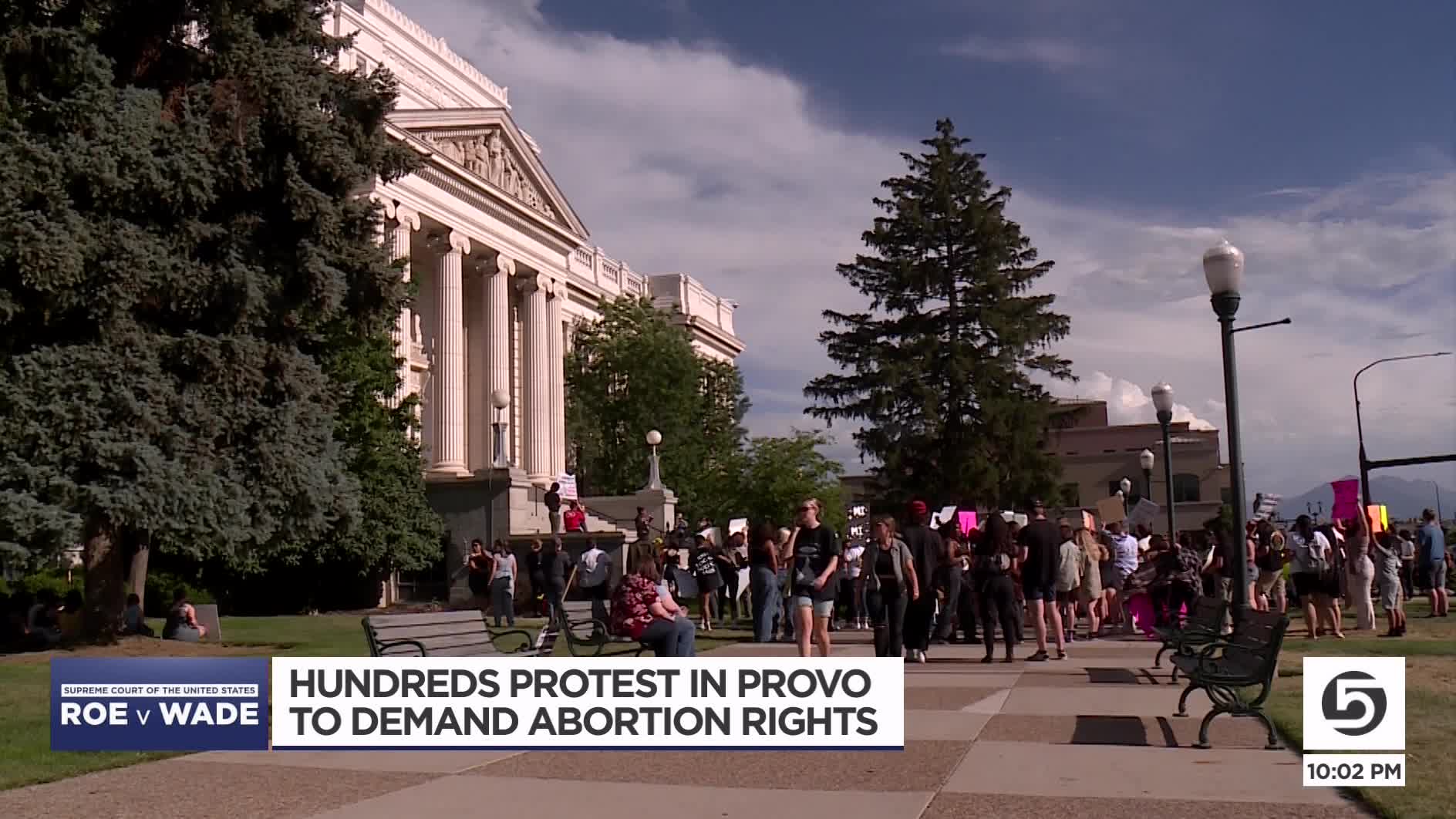 PROVO — A crowd of roughly 300 people gathered in Provo Saturday night to demand abortion rights, following the Supreme Court's decision to overturn Roe v. Wade.