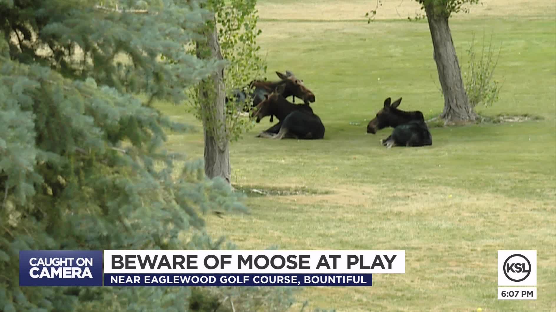 NORTH SALT LAKE — Fore! Strike that. Three moose made their way onto the Eaglewood Golf Course on Wednesday afternoon, throwing several golfers for a loop.