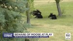 "The moose are still here playing while the car show is getting set up on the golf course," Harrison said. "I really worry about these little babies. I hope no one spooks them or the loud cars don't spook them. I just hope everyone's safe tonight. Tomorrow, there will be fireworks here on the golf course, so I really wish DWR would come and relocate them."