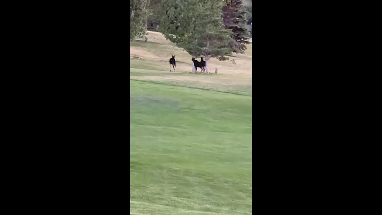 According to general manager Tyler Abegglen, golfers were encouraged "not to approach the moose and to keep their distance." And while the moose were technically on the loose, he said they didn't cause much of a ruckus.
