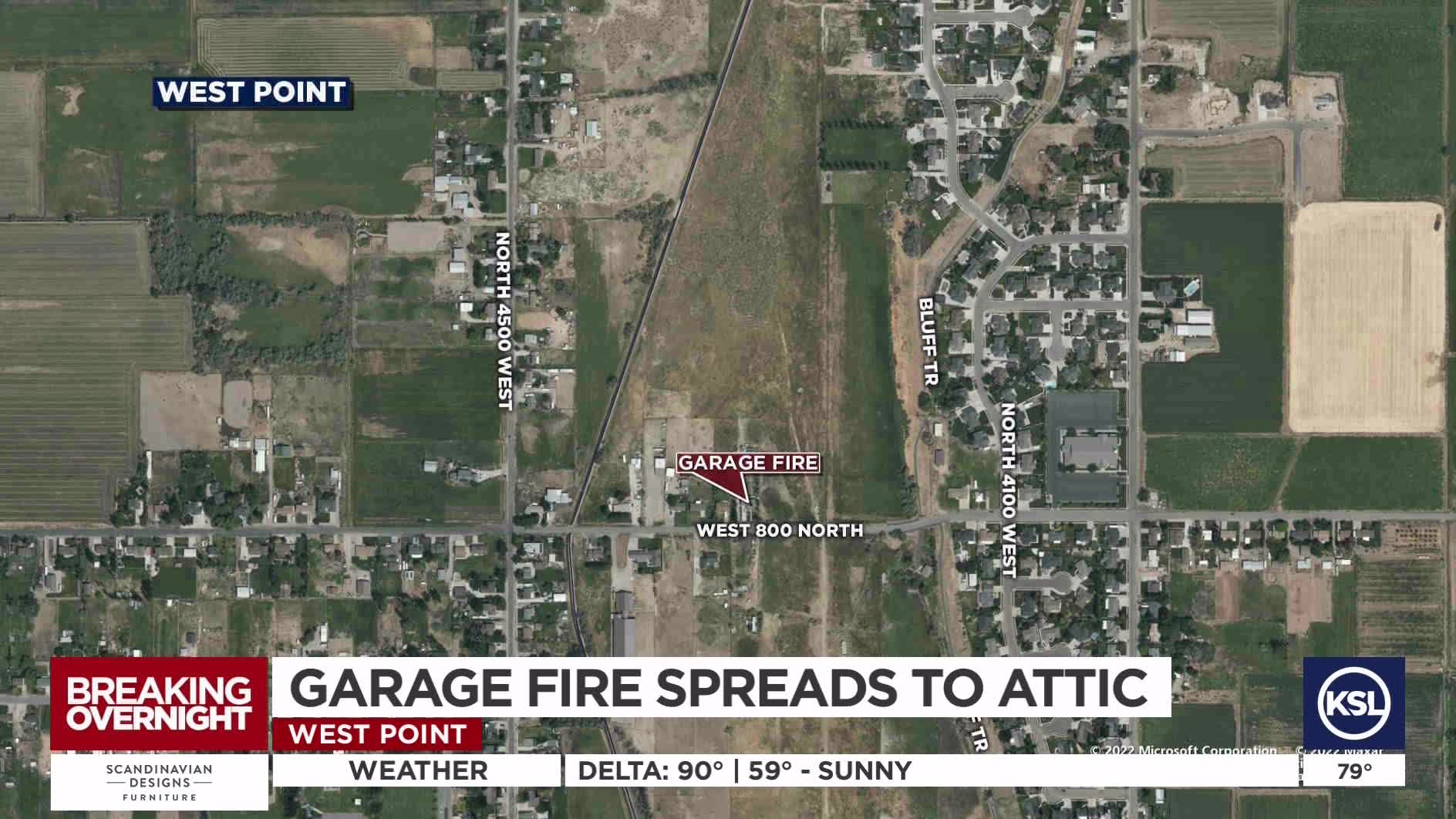 About 2:30 a.m., crews were dispatched to the fire at 4322 W. 800 North in West Point, North Davis Fire District Chief Mark Becraft said.
