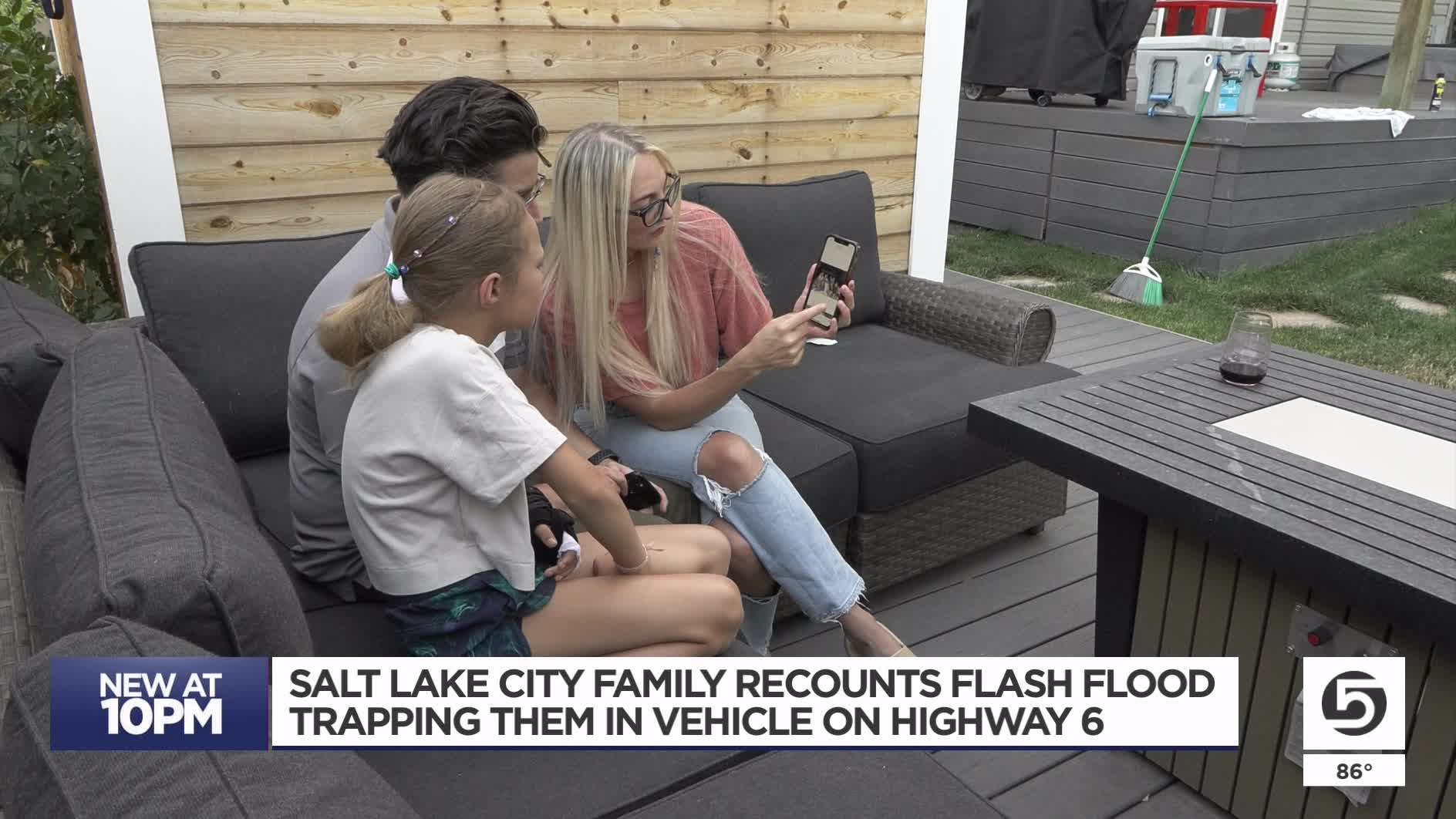 GREEN RIVER — A Salt Lake City family is recounting the terrifying moments a flash flood swept their SUV off U.S. 6 on Wednesday, leaving them trapped as the waters carried the vehicle down a ditch.