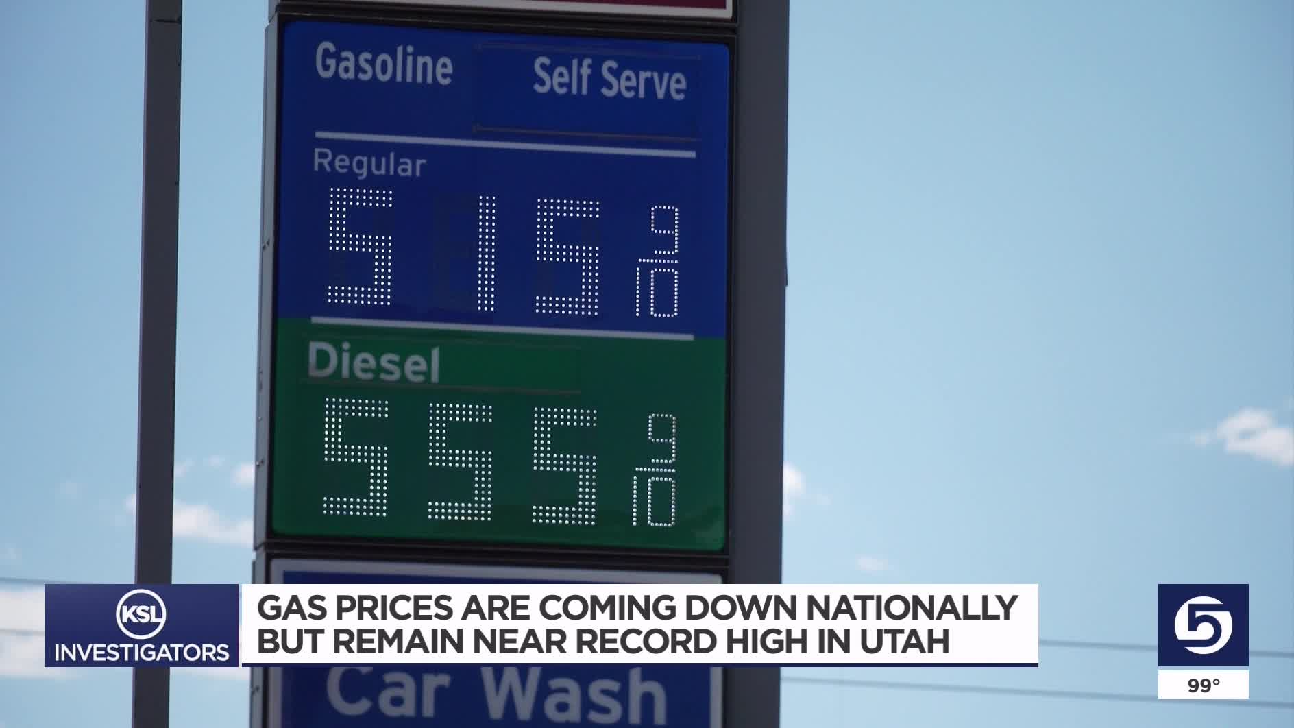 SALT LAKE CITY — Gas prices have been easing nationally over the past week, but in Utah, they are still hovering around AAA's record high average cost set just last week.